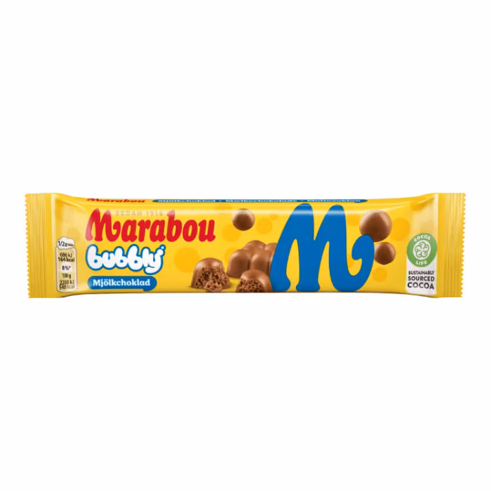 Innehåll: Socker, kakaosmör, kakaomassa, vasslepulver (mjölk), skummjölkspulver, smörfett, vassleprodukt (mjölk), emulgeringsmedel (sojalecitin), arom. kan innehålla nötter och vete minst 30% kakao