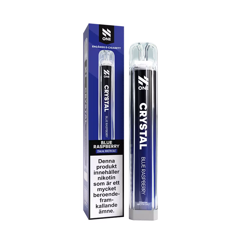 N One Crystal Blue Raspberry är en engångsvape med en tydlig smakprofil av hallon. Den ger upp till 800 puffar och tillverkas av Eciggkedjan Skandinavien AB.